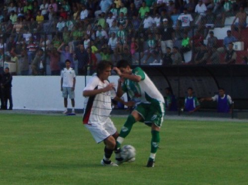 O show de oportunidades desperdiçadas não parou. A torcida começou a ficar impaciente, quando o atacante Léo entrou em profundidade na grande área e chutou com categoria, buscando o ângulo do goleiro Dias, mas a bola acabou batendo no travessão.