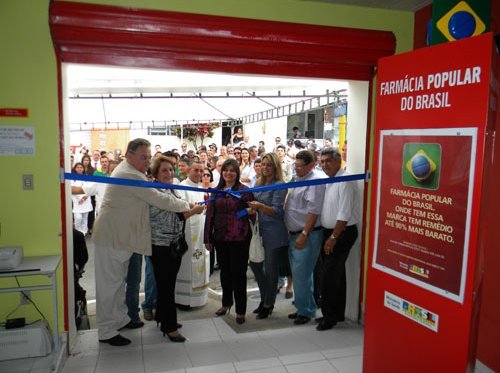 Momento o corte da fita inaugural da Farmácia Popular de Santana do Ipanema em 05.09.2011