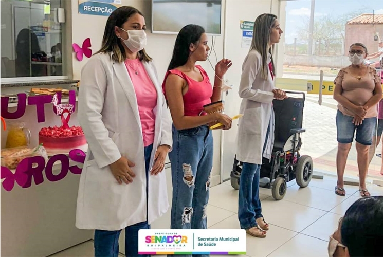 Na manhã da última quarta-feira (20), as equipes dos ESF I, Pedro Vieira Rêgo e ESF IV, Valdeson Pereira Lima, realizaram uma ação sobre o Outubro Rosa, mês de conscientização que tem como objetivo principal alertar as mulheres e a sociedade sobre a importância da prevenção e do diagnóstico precoce do câncer de mama e mais recentemente sobre o câncer de colo do útero.