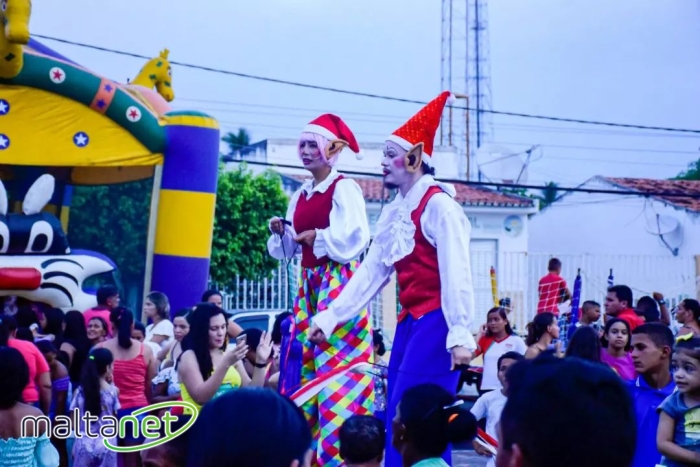 A Turma dos palhaços Karambola e Amora fizeram a alegria da criançada com bastante dança, brincadeiras e muito encanto natalino.