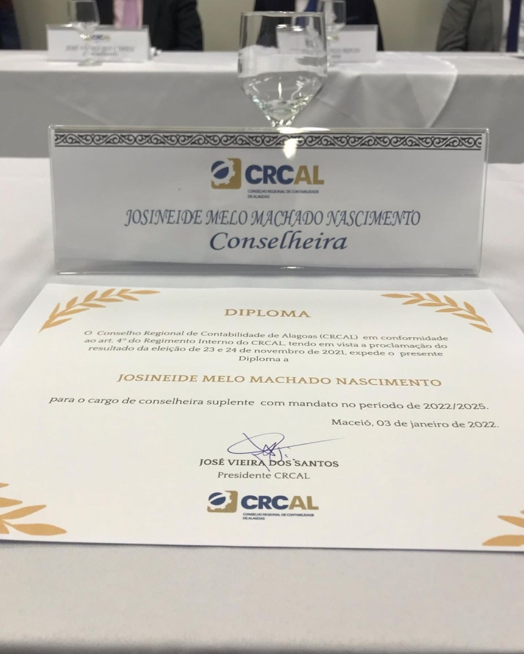Para mim é uma enorme satisfação poder fazer parte como membro representante desse conselho. Gratidão a Deus por esse momento, ao presidente José Vieira e aos colegas da contabilidade que nos depositaram a confiança para representá-los frente ao CRC/AL.