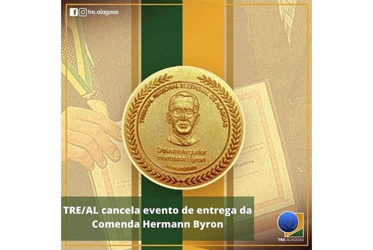 O Tribunal Regional Eleitoral de Alagoas (TRE/AL) cancelou a solenidade de entrega da Comenda do Mérito Eleitoral Hermann Byron de Araújo Soares, maior honraria da Justiça Eleitoral alagoana, que seria realizada nesta sexta-feira (07).