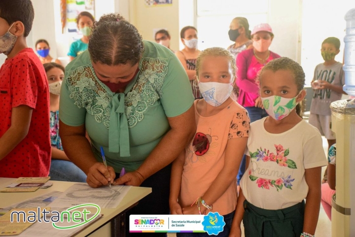O início da imunização aconteceu no Povoado Candunda e está sendo realizada com o imunizante da fabricante Pfizer. As crianças precisam estar acompanhadas de pais ou responsáveis.