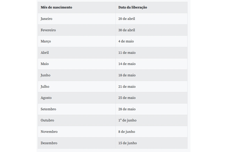 Segundo o presidente da Caixa Econômica Federal, Pedro Guimarães, o calendário de saques começa em 20 de abril e vai até 15 de junho. O dinheiro ficará disponível até 15 de dezembro, quando voltará para a conta vinculada do FGTS.
