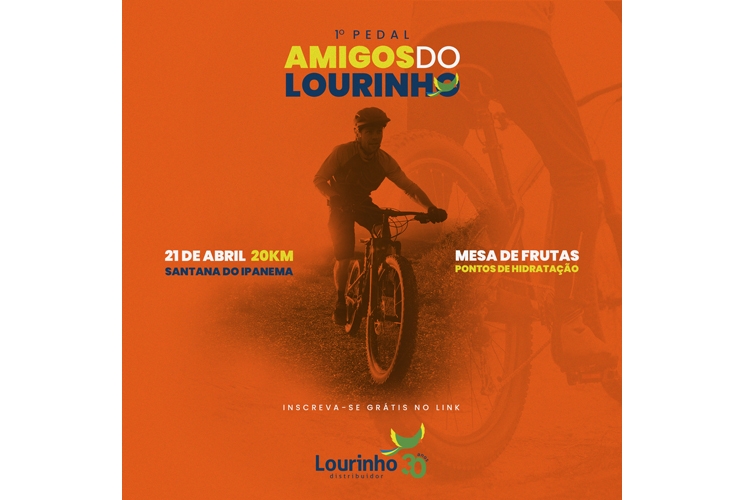 Já estão abertas as inscrições para o 1º pedal Amigos do Lourinho, realizado pelo Lourinho Distribuidor. O evento acontecerá dia 21 de abril, feriado de Tiradentes, em Santana do Ipanema, e faz parte do calendário de comemorações dos 30 anos da empresa. As inscrições são gratuitas e devem ser feitas até 14/04 pelo link disponibilizado no destaque "Pedal" do instagram @lourinhodistrobuidor30anos. Quem se inscrever até quinta-feira (31/03) garantirá uma camiseta personalizada.