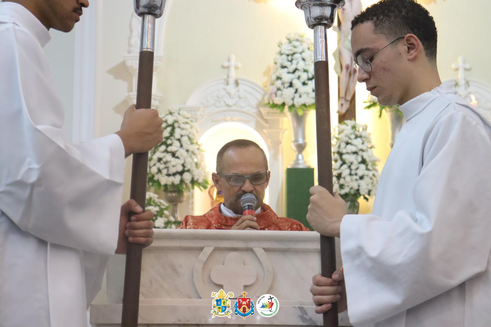 Concelebraram os padres Jacyel, José Paulo, pelo diácono Edivaldo e o Frei Jarlison.