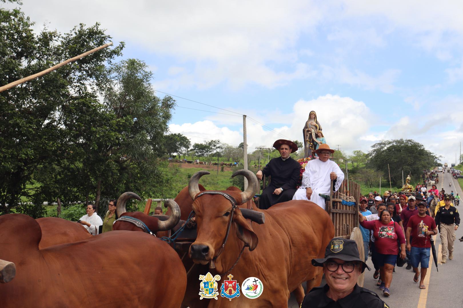 Após a Santa Missa os carreiros, cavaleiros, amazonas e carroceiros seguiram em procissão, acompanhando as imagens de Senhora Santana, que estava no carro de boi do Sr. Nequinho, e a de São Joaquim.