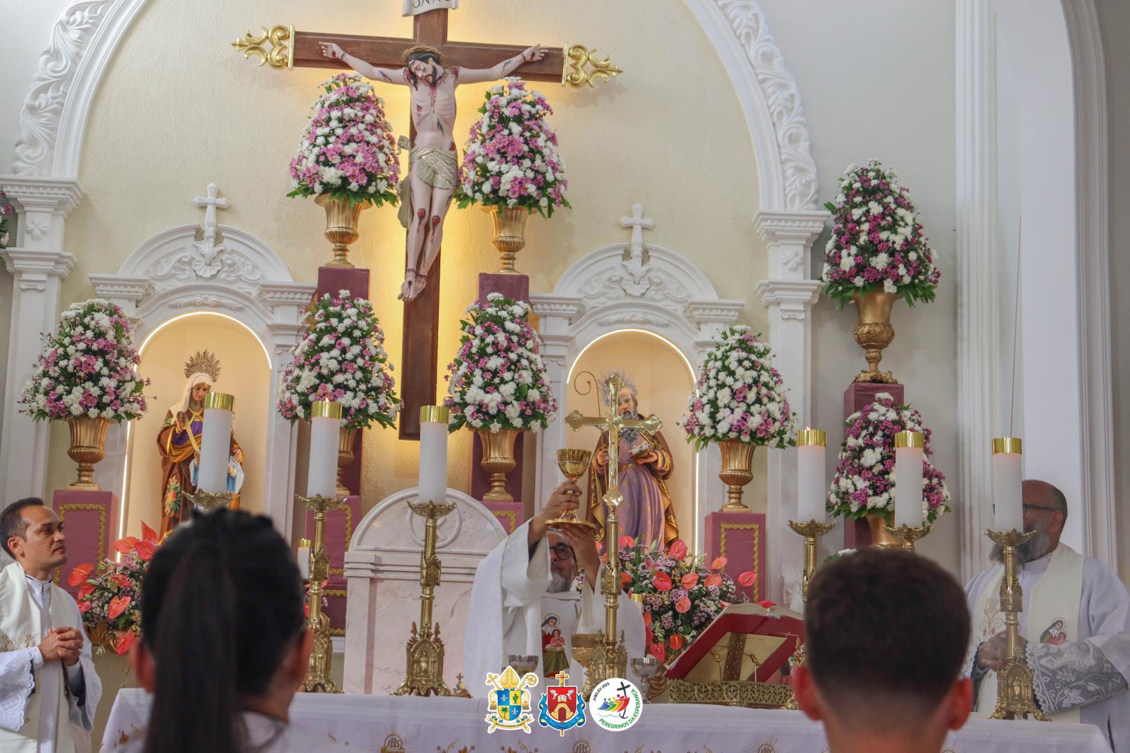 Com alegria e devoção que na tarde deste sábado (26), celebramos a Missa de Ação de Graças aos nossos Padroeiros Senhora Santa Ana e São Joaquim, presidida pelo Pe. José Paulo Rosendo, vigário paroquial da Paróquia de Senhora Sant´Ana e concelebrada pelo Pe. Marcos Renildo, Frei Jarlison e pelo Diácono Edivaldo.