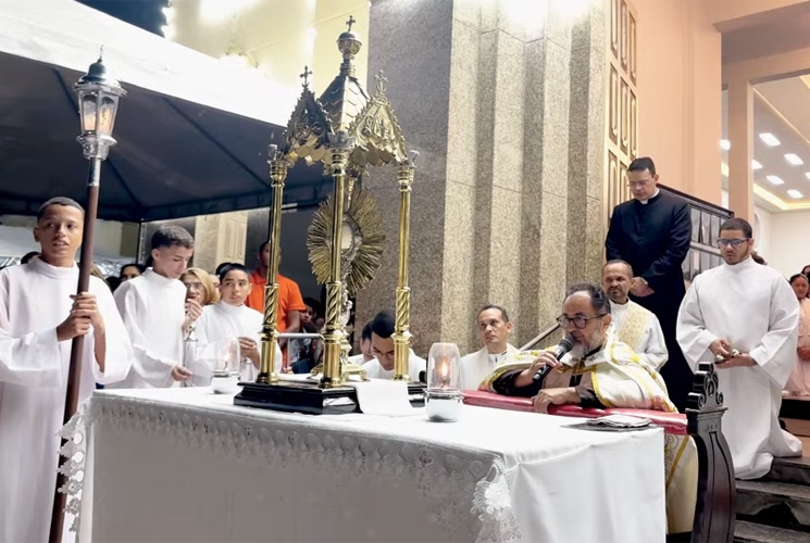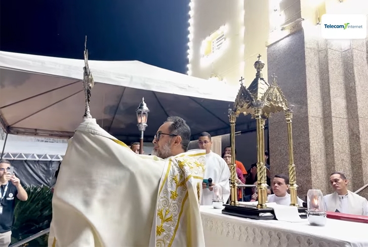 O Santíssimo Sacramento foi conduzido até o altar instalado em frente a Igreja Matriz e a bênção foi feita pelo Pe. José Paulo Rosendo, vigário paroquial da Paróquia de Senhora Sant´Ana.