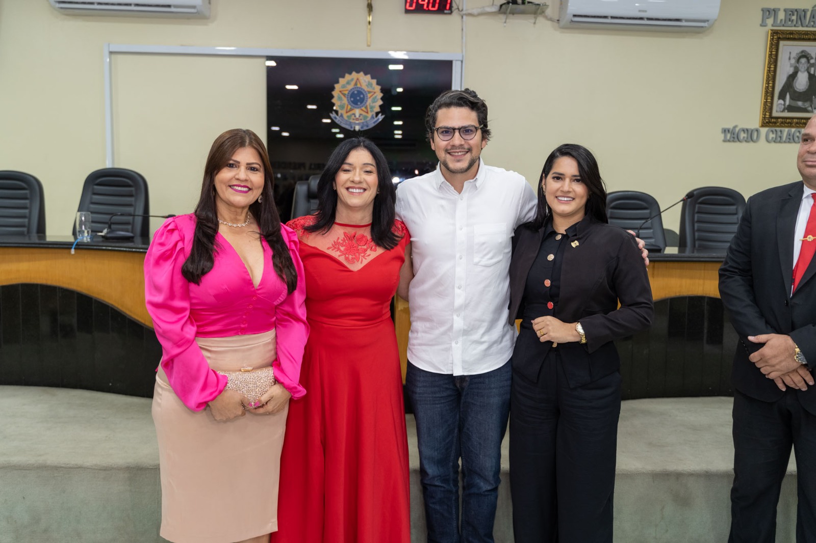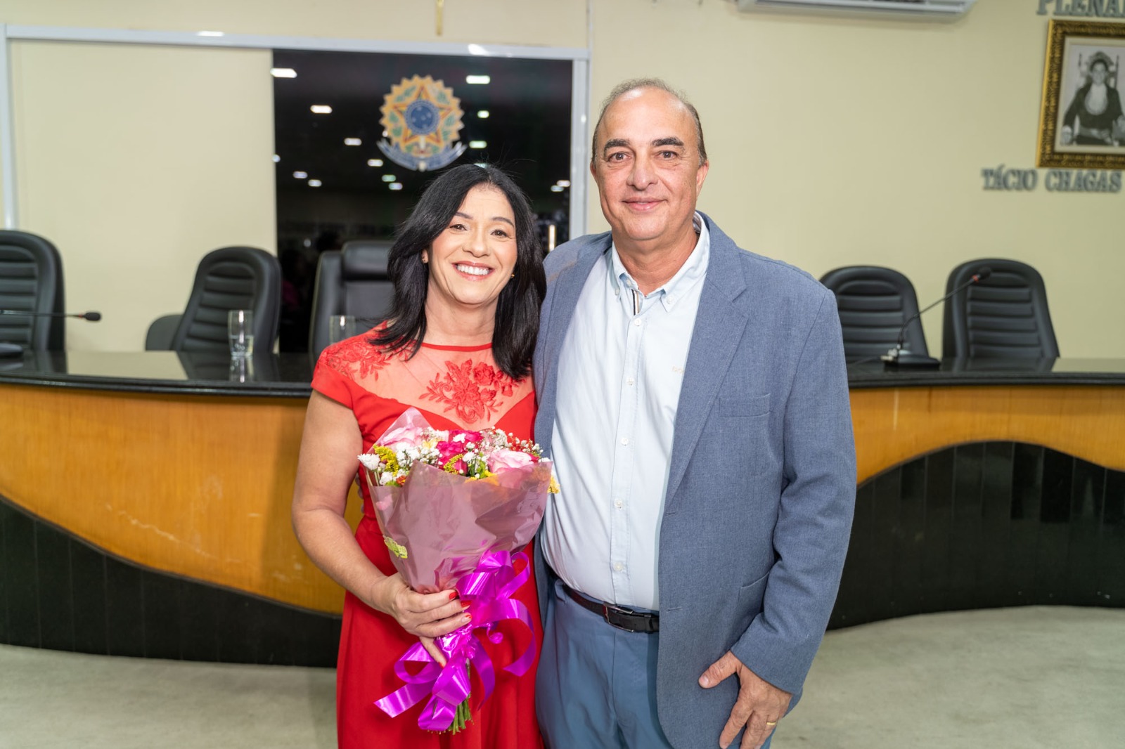 A solenidade de posse, que foi presidida pelo vereador Genildo Bezerra – Papa Tudo, contou com a presença do prefeito Eduardo Bulhões, do vice-prefeito Mario Siqueira Silva (Mário do Laboratório), secretário de Estado da Agricultura Marcelo Melo e a secretária municipal de Políticas para as Mulheres, Renilde Bulhões que compuseram a mesa diretiva, demais vereadores e vereadoras, secretários municipais e convidados especiais.