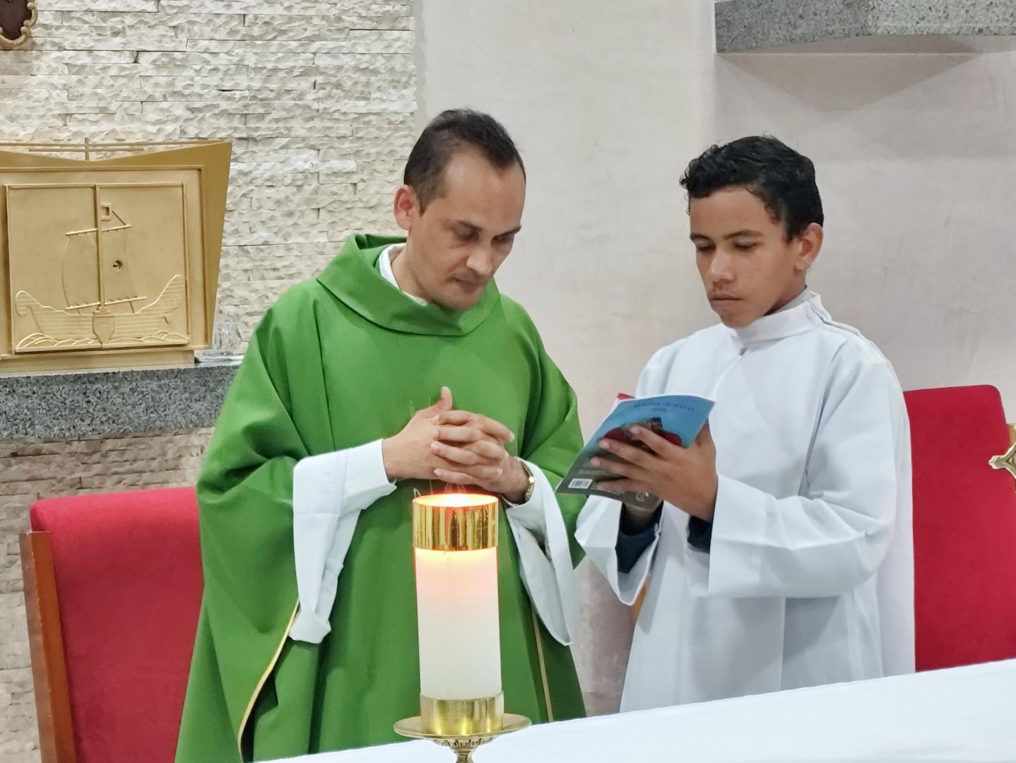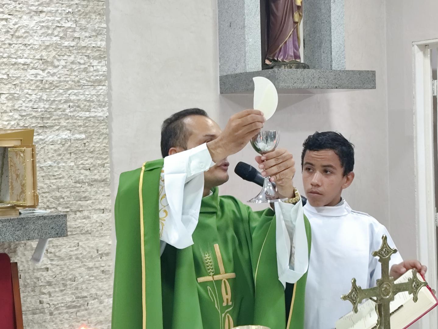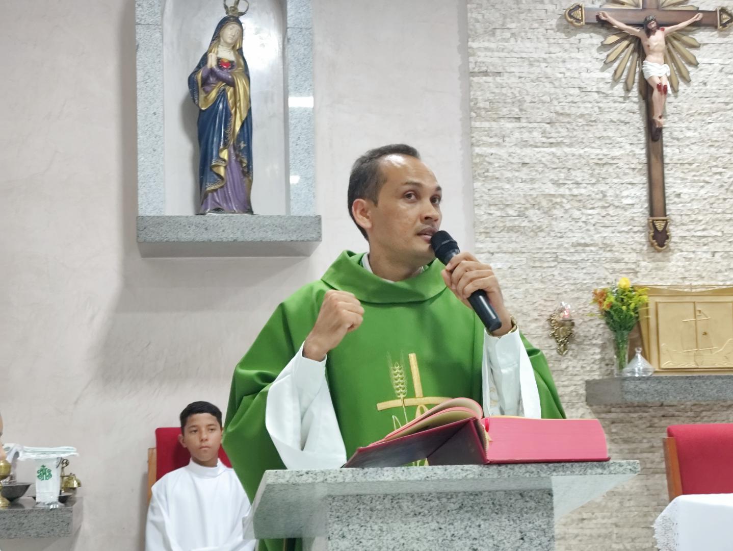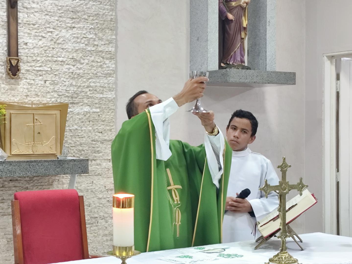 Presidiu a Celebração Eucarística o padre Marcos Renildo, pároco da Paróquia de São Cristóvão.