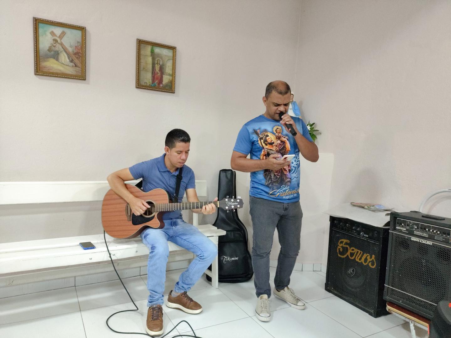 Os músicos professor Marcos Antônio e Adriano Lima, integrantes da Banda Trono, foram os responsáveis pelos cânticos.