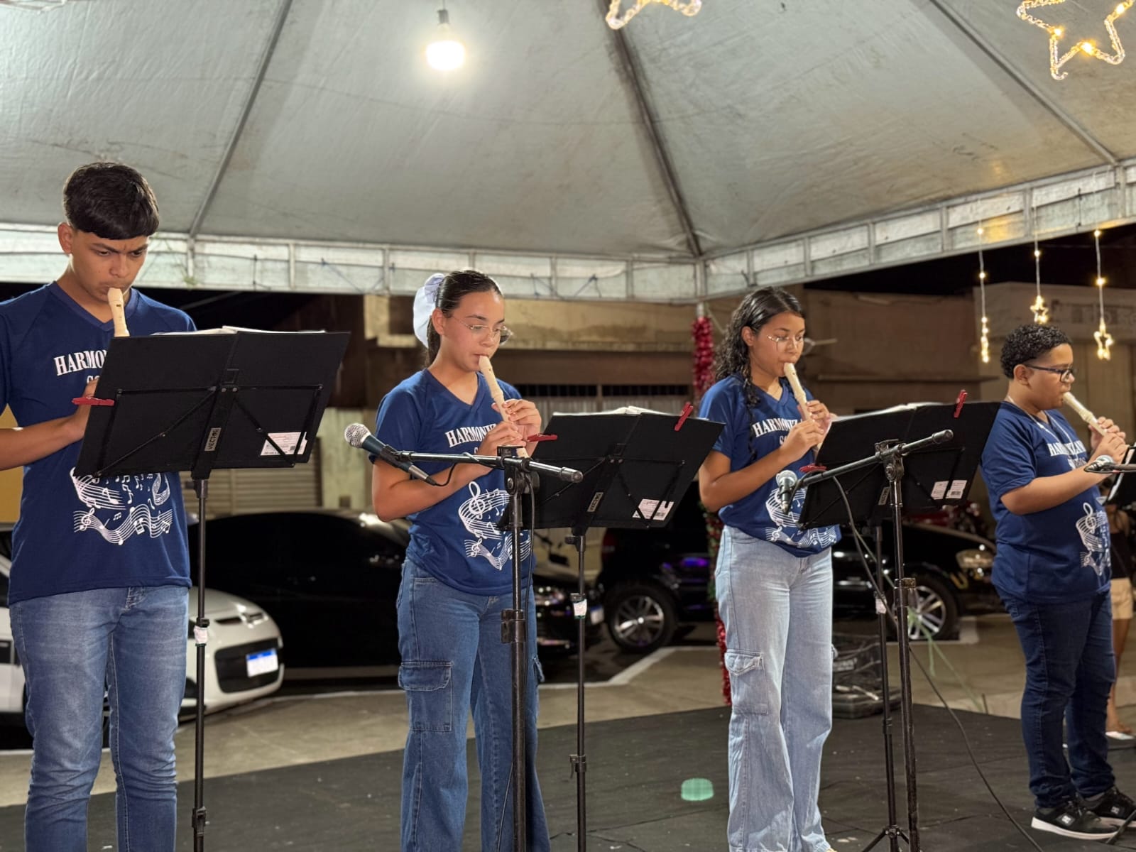 A primeira apresentação ficou a cargo do Coral da Melhor Idade. Na sequência as pequeninas integrantes do Grupo Balão Mágico. A terceira apresentação foi do Grupo de Flautistas Harmonizando Sonhos, e finalizando voltou o Grupo Balão Mágico com mais uma coreografia.
