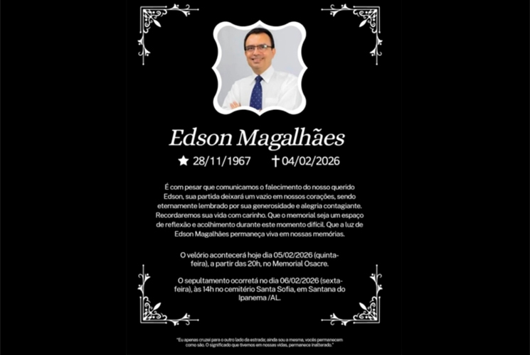 O corpo do ex-vice-prefeito e ex-vereador de Santana do Ipanema, Edson Magalhães, que morreu na noite da última quarta-feira (4), vítima de atropelamento, está sendo velado no Memorial OSACRE, localizado na Rua Delmiro Gouveia, nas proximidades da Praça Frei Damião.