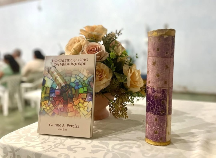 Após a palestra aconteceu o lançamento do livro NO CALEIDOSCÓPIO DA MEDIUNIDADE, do espírito Yvone do Amaral Pereira, psicografado poer ele, Vitor José