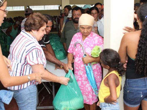 A Prefeita Renilde Bulhões participou da distribuição que aconteceu no Tênis Club Santanenes. A cesta é composta por feijão, farinha, arroz, açúcar, leite de coco e peixe. A Secretaria Municipal de Assistência Social coordenou a distribuição das fichas.