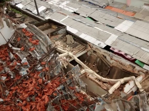 Fortes chuvas provocaram desabamento do teto (Foto: Corpo de Bombeiros/Cortesia)