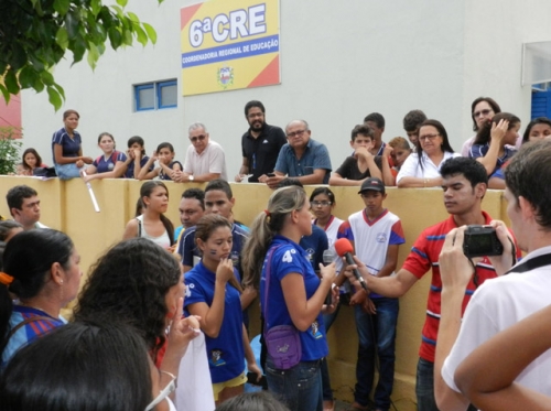 Os estudantes foram até a VI Coordenadoria Regional de Ensino e uma comissão foi recebida pala Professora Ana Oliveira, coordenadora da VI CRE.