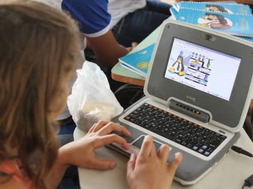 Alunos se encantaram com os laptops do programa UCA da Escola Rotary, onde tem a atuação dos bolsistas do PIBID