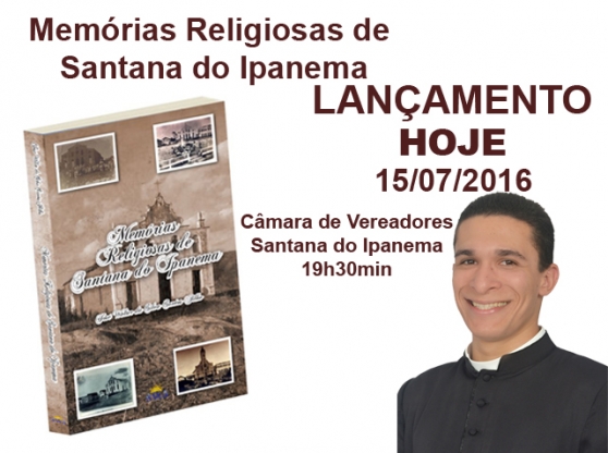 Acontecerá hoje (15) no plenário da Câmara de Vereadores de Santana do Ipanema o lançamento do livro MEMÓRIAS RELIGIOSAS DE SANTANA DO IPANEMA de autoria do seminarista José Walter da Silva Santos Filho.
