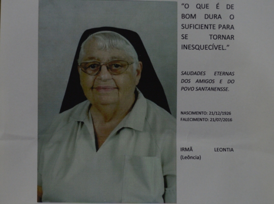 Lembrança com a ifotografia da irmã Leoncia foi distribuída entre os presentes.