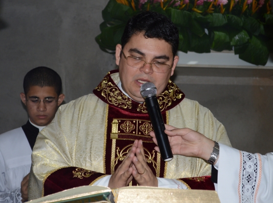 Ao final da homilia o padre fez um agradecimento especial a Inês, que coordena o coral, e demais catequistas.