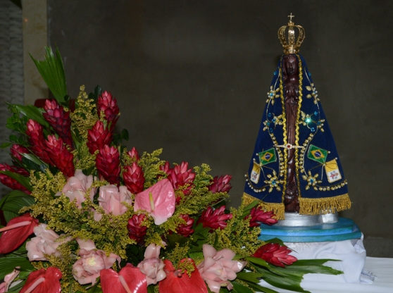 A imagem de Nossa Senhora Aparecida foi conduzida pelo seminarista Cristóvão e entronizada no presbitério.