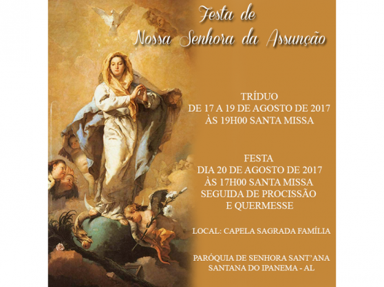 A Paróquia de Paróquia Senhora Sant?Ana celebrará de 17 a 20 de Agosto a festa de Nossa Senhora Assunção.Convite