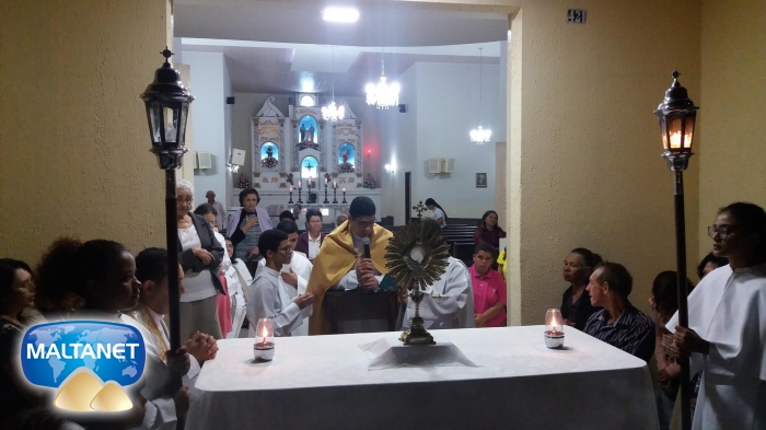 No retorno da procissão aconteceu a Benção do Santíssimo Sacramento e encerramento da festa.