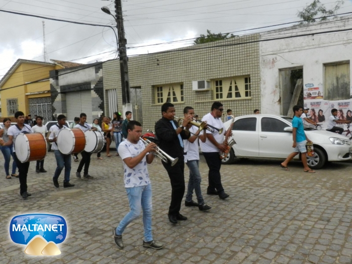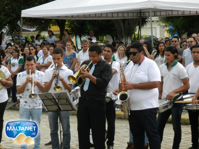 Abrilhantou o momento cívico a Banda Fanfarra Santo Antônio do Centro Educacional Municipal Adovaldo Albuquerque ? CEMA que executou os hinos de Major Izidoro, Alagoas e da Independência do Brasil.
