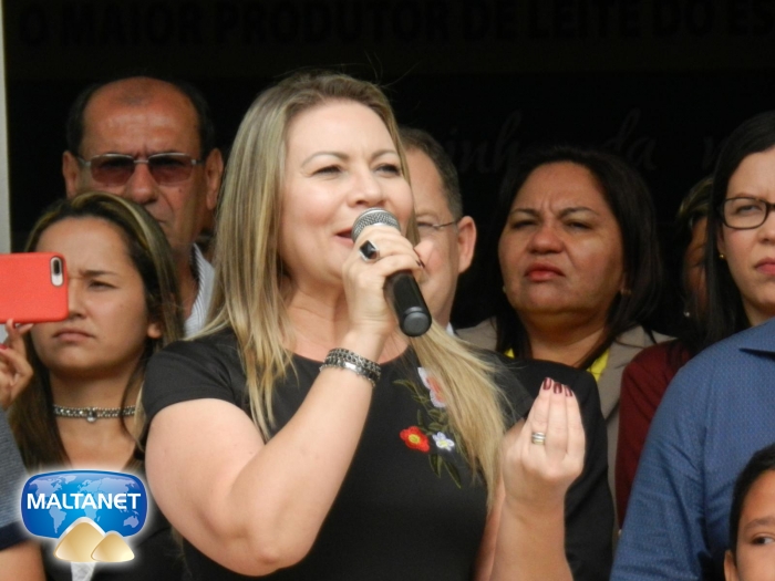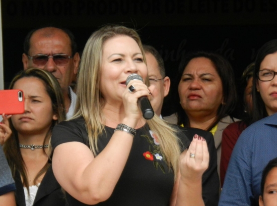 Prefeita Santana Mariano no seu pronunciamento