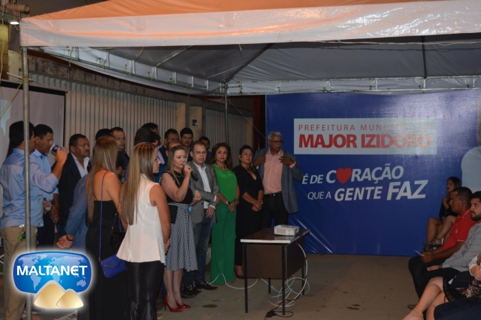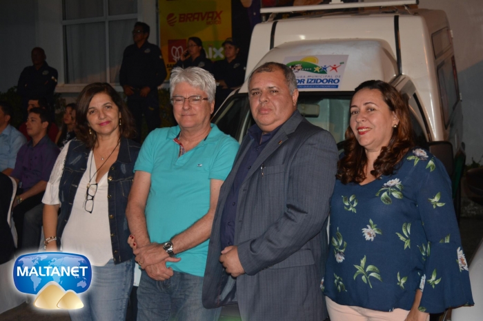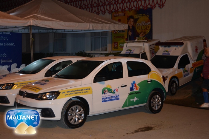 Antes da solenidade aconteceu em frente a sede do poder legislativo de Major Izidoro a entrega de 05 veículos para as secretarias municipais. 04 para a saúde e um carro compactador de lixo para a secretaria de obras.