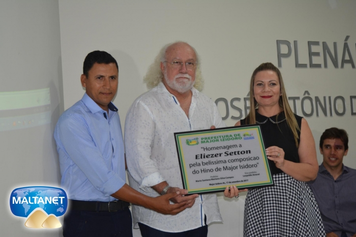 Compostas a mesa e apostos os vereadores o cantor, compositor e instrumentista Eliezer Setton executou os hinos Nacional Brasileiro, de Alagoas ambos numa versão especial criada por ele e o Hino Oficial de Major Izidoro.