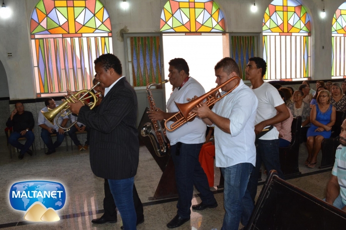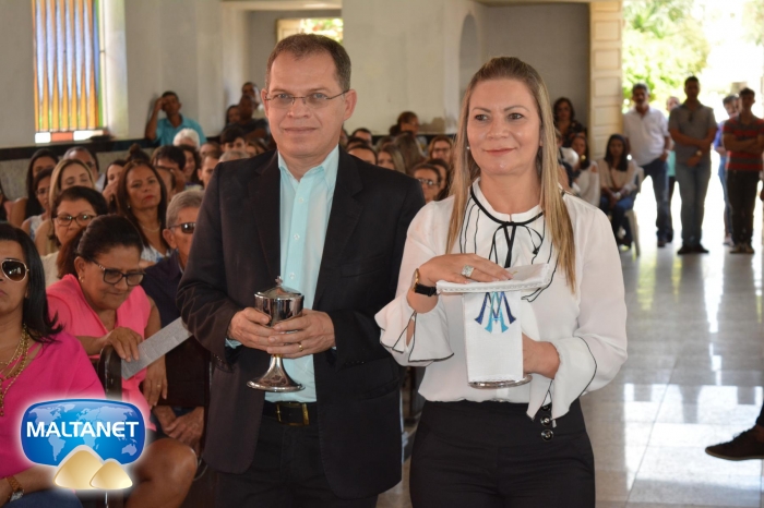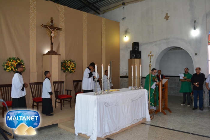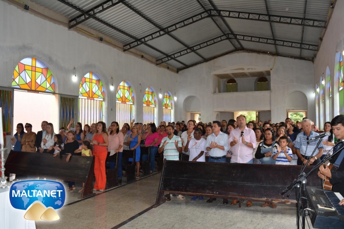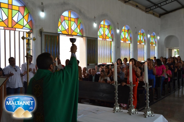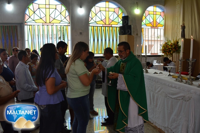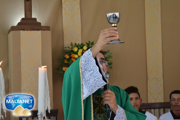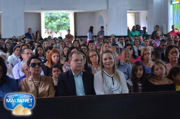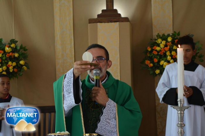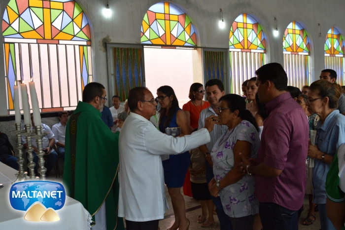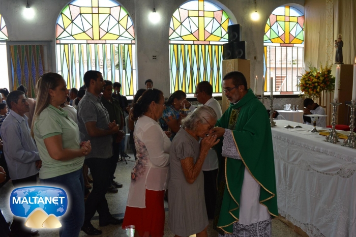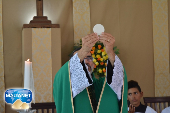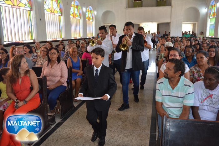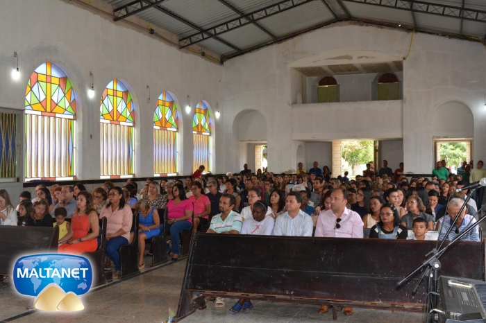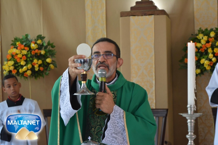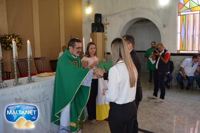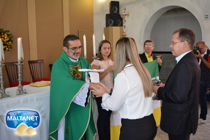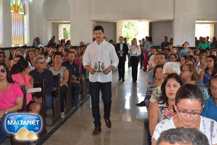 Durante a Santa Missa na procissão de ofertas o município apresentou suas oferendas: O secretário André Pereira e a assessora da prefeita Patricia conduziram a Bandeira do município ao altar; também conduziram ofertas o garoto Manoel, o vereador Sávio Alexandre ? presidente do Poder Legislativo e a prefeita Santa Mariano e seu esposo César Campos que conduziram o Pão e o Vinho.