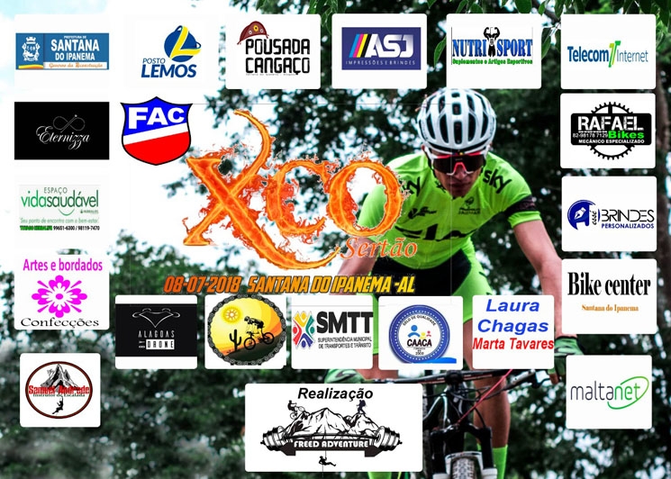 A etapa do XCO da Festa da Juventude 2018 é uma realização de Fred Adventure com apoio total da Prefeitura Municipal de Santana do Ipanema e empresas patrocinadoras.