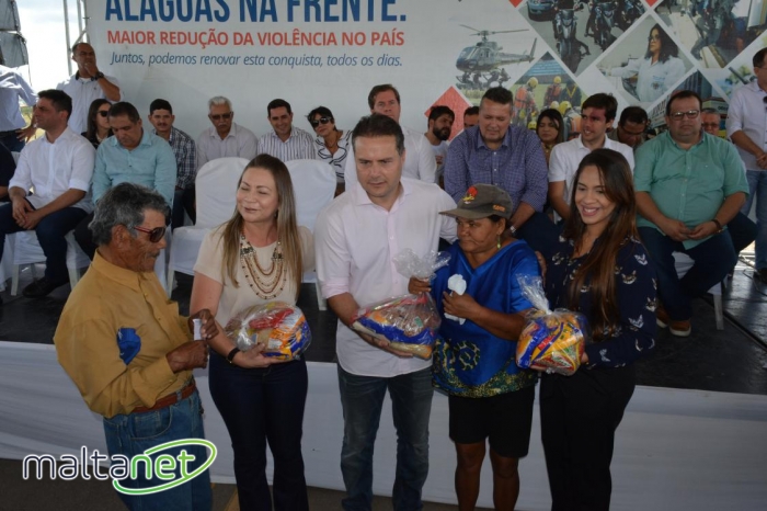 O governador Renan Filho entregou ainda, para gestantes e nutrizes de Major Izidoro, 247 cestas nutricionais, dentro do Programa Estadual de Complementação Alimentar e nutricional, executado pela Secretaria de Estado da Assistência e Desenvolvimento Social (Seades), além de um trator e uma grade aradora destinados à agricultura familiar no município, e uma ambulância de transporte sanitário, responsável pelo deslocamento de pacientes entre unidades de saúde.