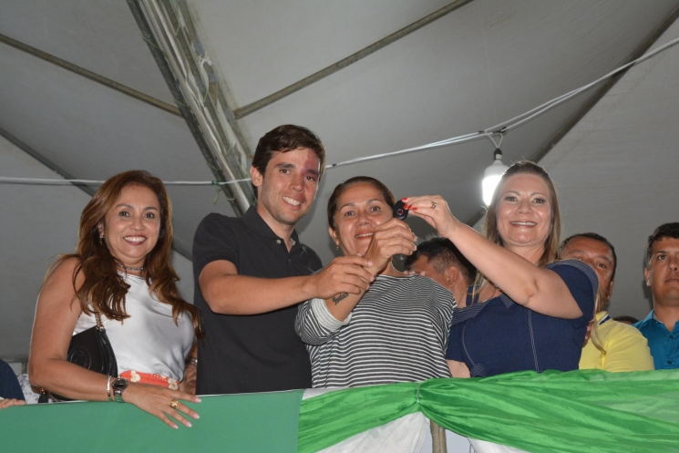 Prefeita Santana Mariano e o vice-prefeito Leopoldo Amaral entregas as chaves da ambulância a diretora do Hospital Erechias da Rocha