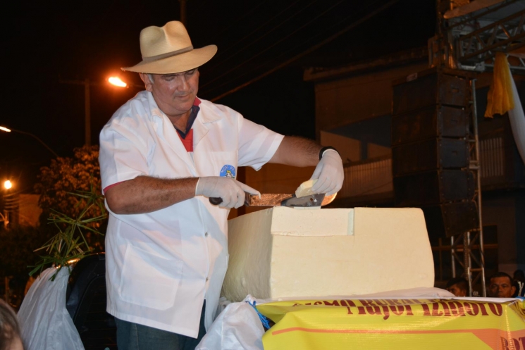 O maior queijo de Alagoas com 136 quilos foi partido e distribuído aos presentes