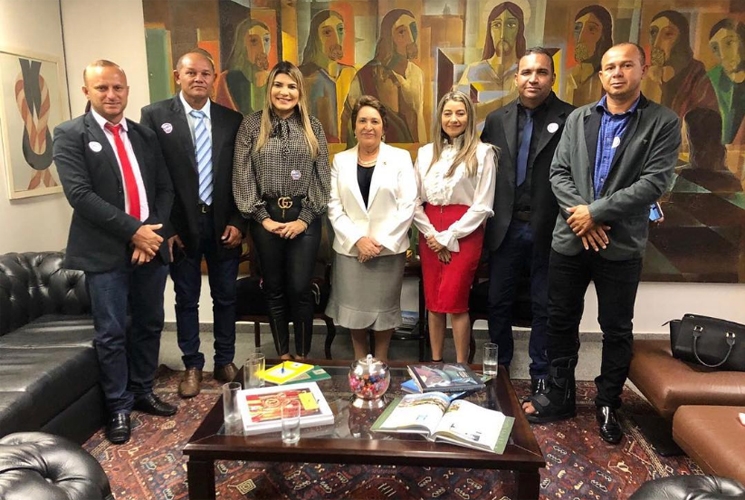 A prefeita do município de Senador Rui Palmeira Jeane Moura, acompanhada do vice-Prefeito Erisvaldo Moura e dos vereadores Renilson (Padre), Zé Milton, Celhinha e Lenildo foram recebidos pela senadora Renilde Silva Bulhões Barros no seu gabinete em Brasília.