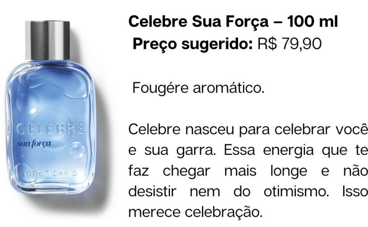 Celebre, lançamento do Boticário, nasceu para homenagear a força e a energia otimista dentro de cada um. Inspirada no Nordeste, a novidade ganhou forma a partir de verdades contadas por pessoas nativas da região, tornando-se uma fragrância solar, luminosa e potente, além de ser acessível pelo preço sugerido de R$ 74,90.