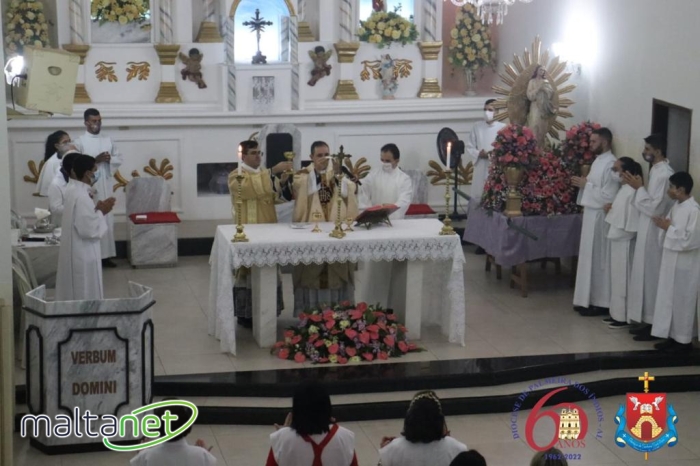 A comunidade paroquial se reuniu na Capela Sagrada Família (igreja mais próxima do Monumento dedicado à Mãe de Deus pela passagem do século XIX para o século XX) sob a presidência do Padre Jacyel Soares Maciel e assistência litúrgica do diácono Clarindo, para a Solene Eucaristia.