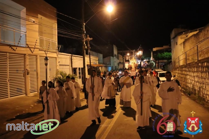 Após a Santa Missa aconteceu a procissão, percorrendo algumas ruas do bairro Monumento, e a Bênção do Santíssimo Sacramento.