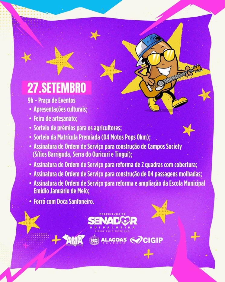 No período de 26 a 29 de setembro a Prefeitura Municipal de Senador Rui Palmeira realiza d décima terceira edição da grandiosa Festa do Feijão.