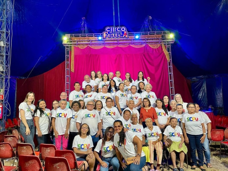 Integrantes da Melhor Idade do CRAS e moradores do Lar São Vicente vão ao Circo do Palhaço Futuca