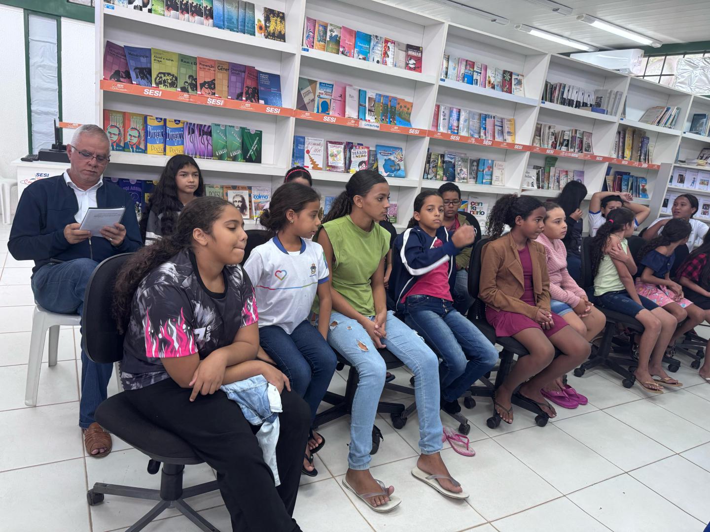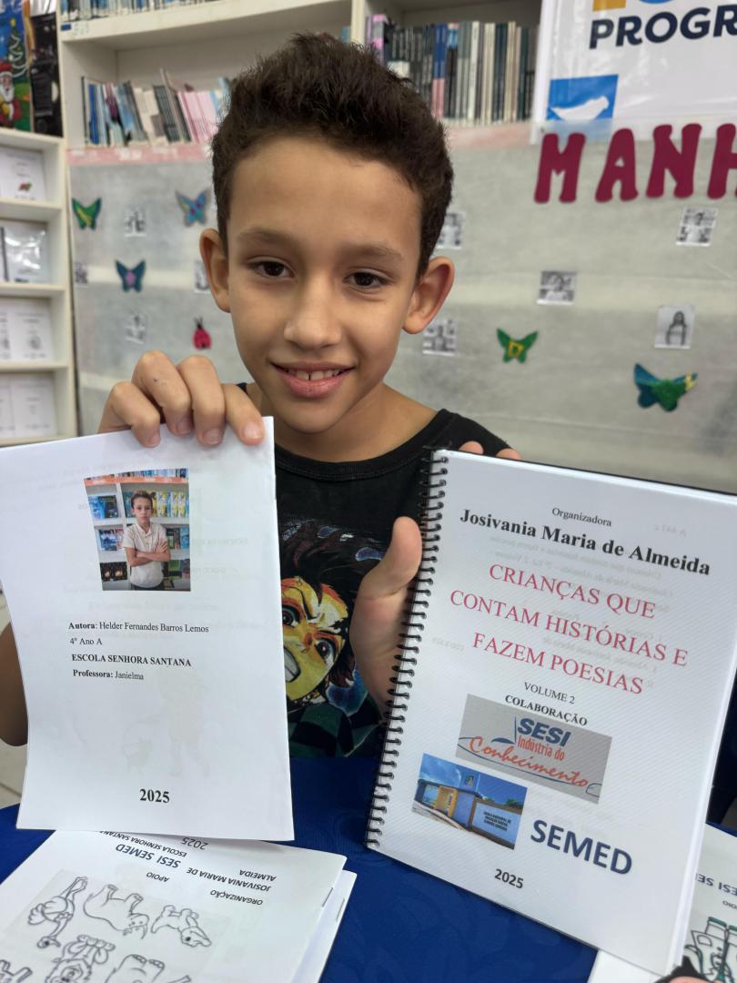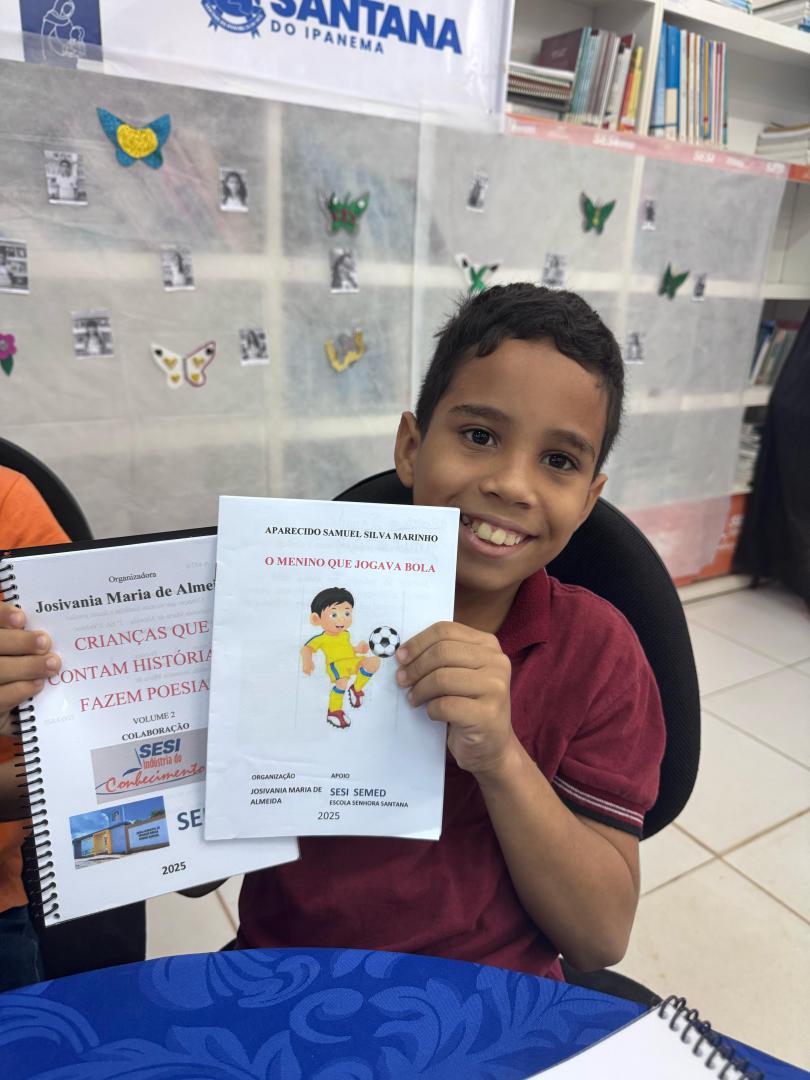 Esse projeto é desenvolvido pela bibliotecária Josivânia Maria de Almeida, com apoio da EMEB Senhora Santana e Secretaria Municipal de Educação, que por um período reúne os alunos na Biblioteca Dr. Eraldo Bulhões – Indústria do Conhecimento SESI para elaboração de histórias e poesias.