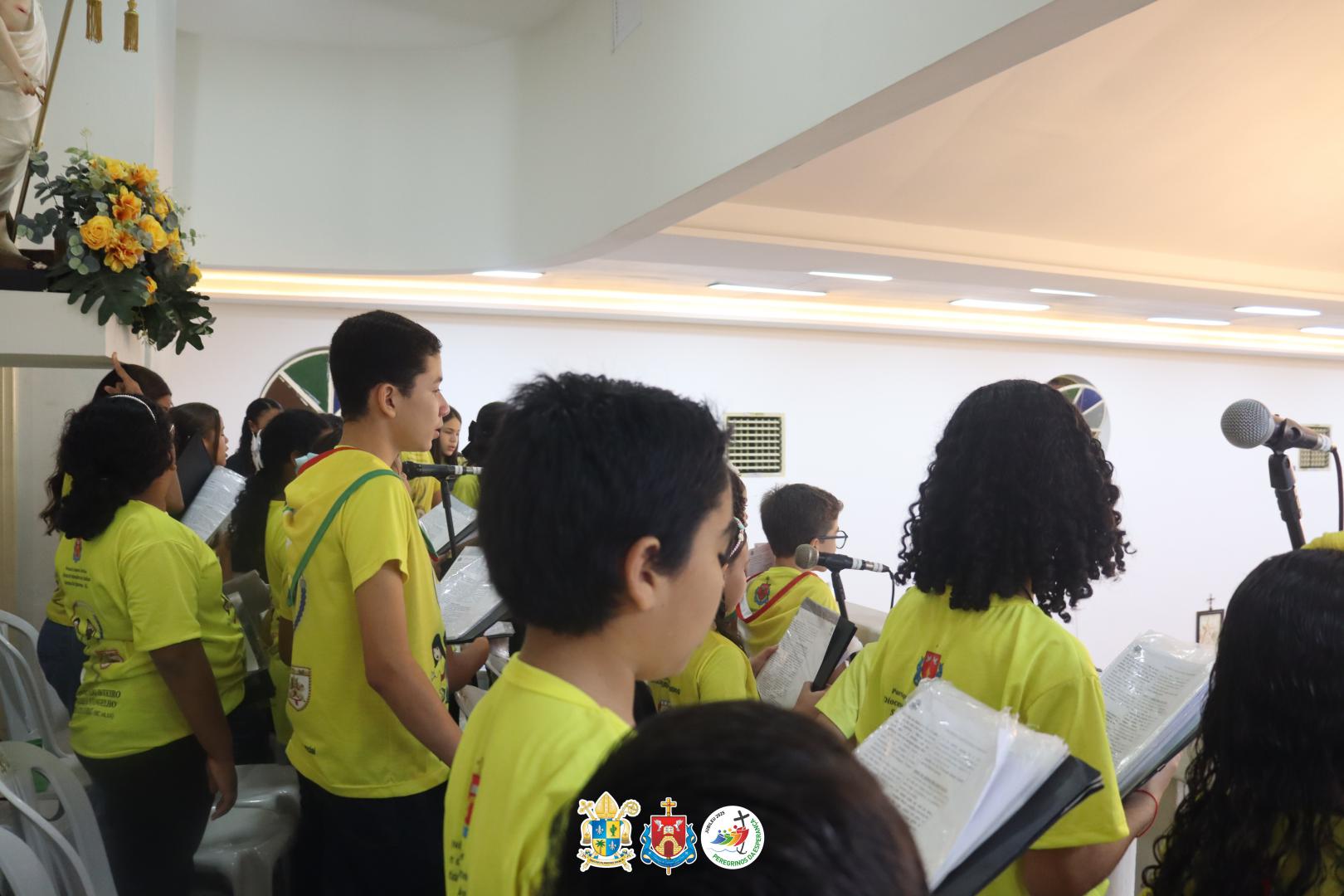 O Coral Infância Missionária foi o responsável pelos cânticos.