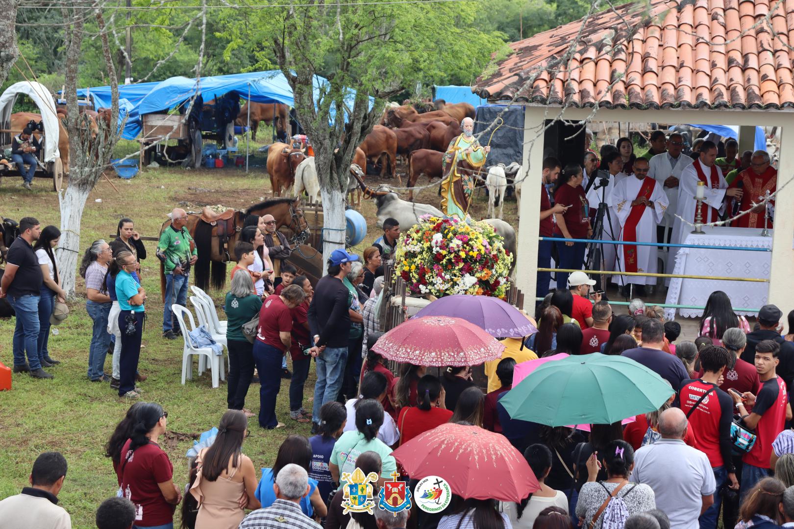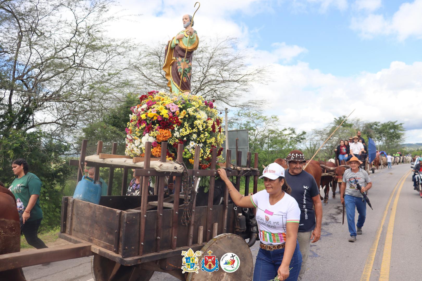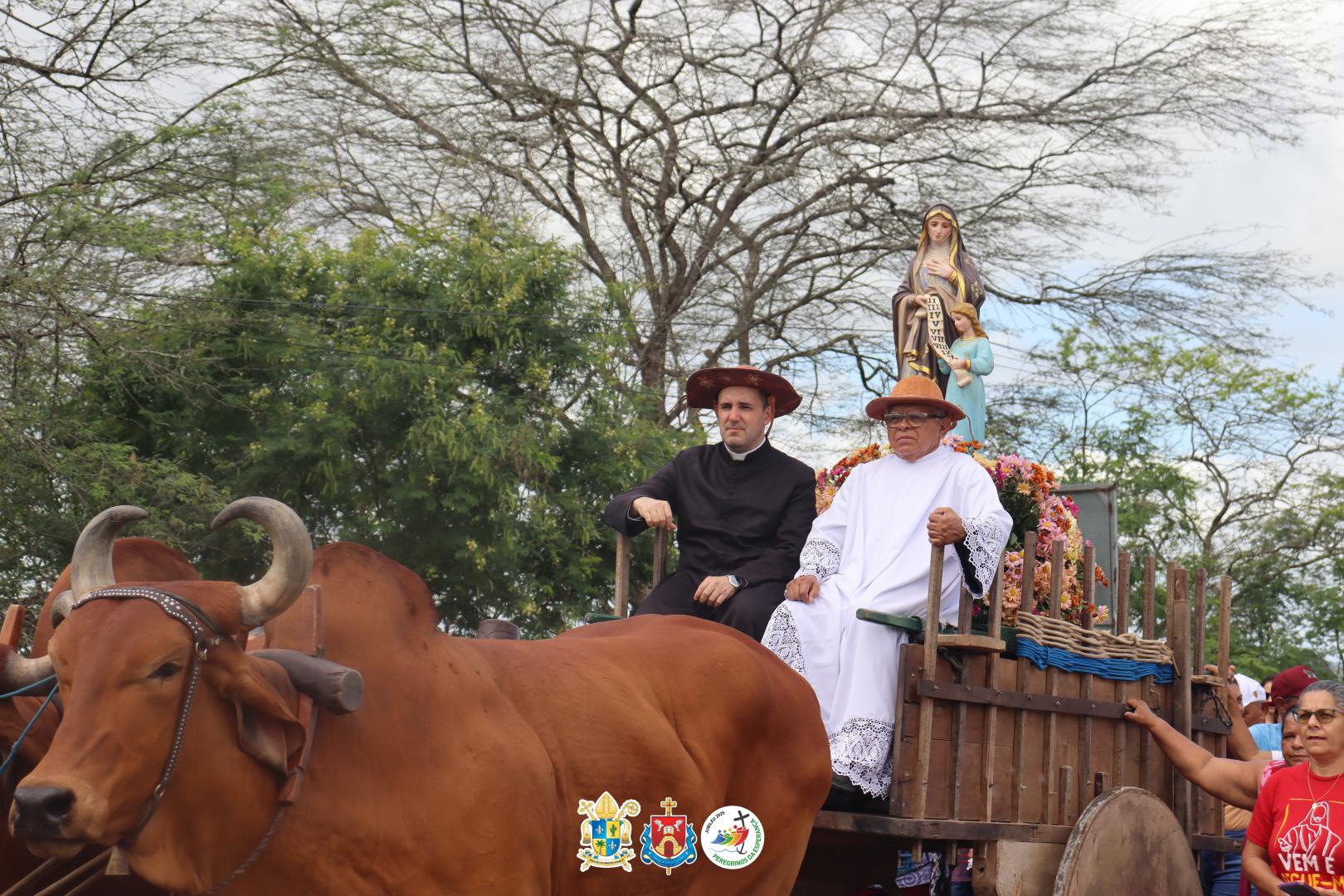 Após a Santa Missa os carreiros, cavaleiros, amazonas e carroceiros seguiram em procissão, acompanhando as imagens de Senhora Santana, que estava no carro de boi do Sr. Nequinho, e a de São Joaquim.