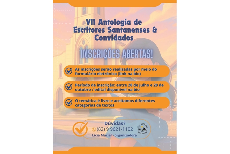 Foi publicado nesta segunda-feira (28) o edital da VII Antologia de Escritores Santanenses & Convidados.