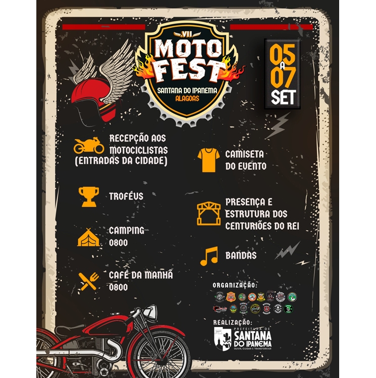 O VII Motofest é uma realização da Prefeitura de Santana do Ipanema, com a organização dos motoclubes locais.