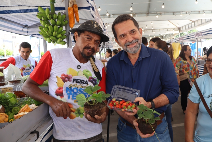 Com mais de 30 estandes reunindo agricultores familiares, associações e cooperativas, a feira atraiu um grande público interessado em comprar alimentos saudáveis e valorizar o trabalho do campo. Um dos principais destaques foi o estande do agricultor Cláudio Gonzaga, do Alto Sertão, que encantou os visitantes com a variedade e qualidade dos produtos.